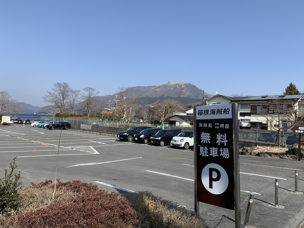 P12 箱根町園地駐車場(無料)に車を停めて反時計回りで芦ノ湖を一周します。