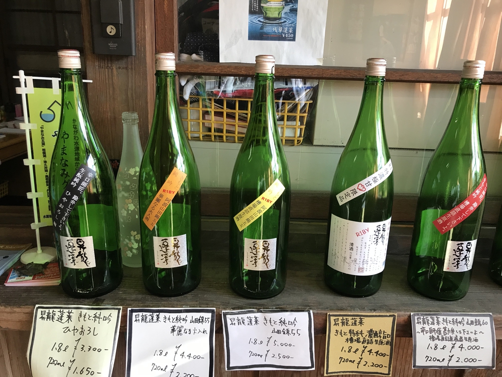 高取山、仏果山、経ケ岳とピークを通り、ロードに降りたら、酒蔵「大谷孝酒造」へ。開いていれば直売で季節のお酒を購入できます。開いてなくても酒蔵前の二本欅は一見の価値あり!