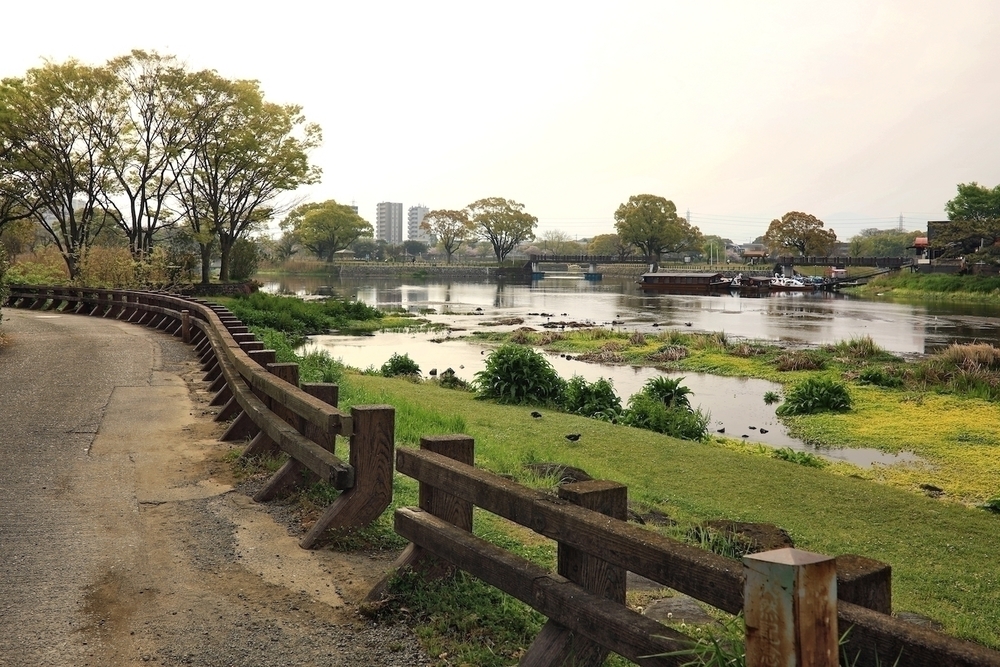 熊本市中心部から南東約5kmの場所にある水前寺江津湖公園は、水生生物や野鳥がみられることから「水と緑のわくわくオアシス」と呼ばれています。江津湖は上江津湖と下江津湖に分かれ、これら一帯の水辺の遊歩道はジョギングに最適。また、熊本市動植物園脇には日本では珍しい無料で「キリンが見える道」があります。