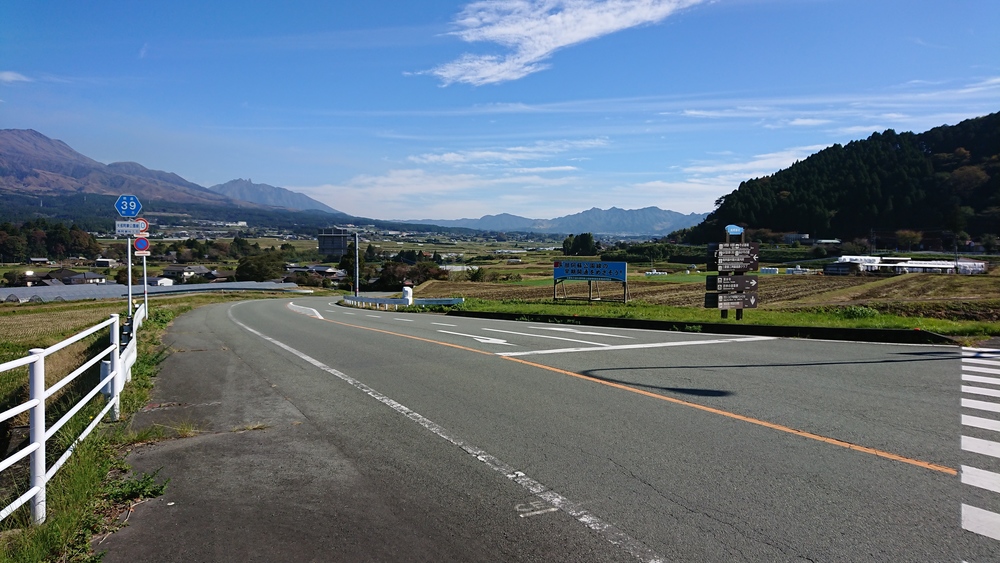 南阿蘇村復興マラソンのコースです。前半の折り返し迄はほとんど上りです。緩やかな坂道が長いので実際の距離より長く感じます。きつくなったら辺り一面の風景を眺めると疲れも忘れます。慣れると病みつきになりそうなコースでした。