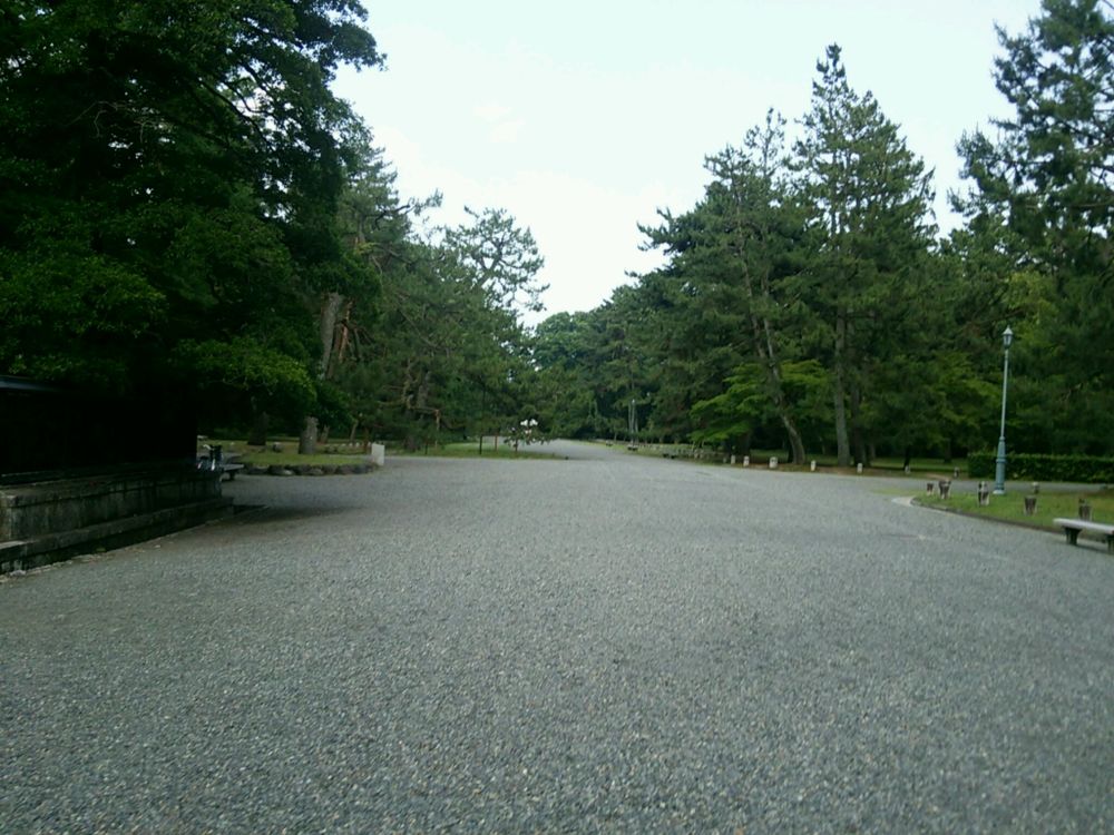 御所内の砂利道を走るのもいいですが、脇にあるオフロードを走ると、京都市内とは思えない、素晴らしいコースです。日差しのキツイ日には日陰も多く特におススメです。