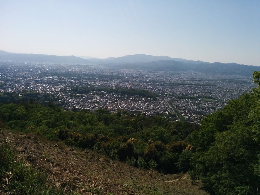 標高は低いので、走ってのぼると30分ぐらいでは眺望のよいところまで行けます。京都の街を一望してみてください。