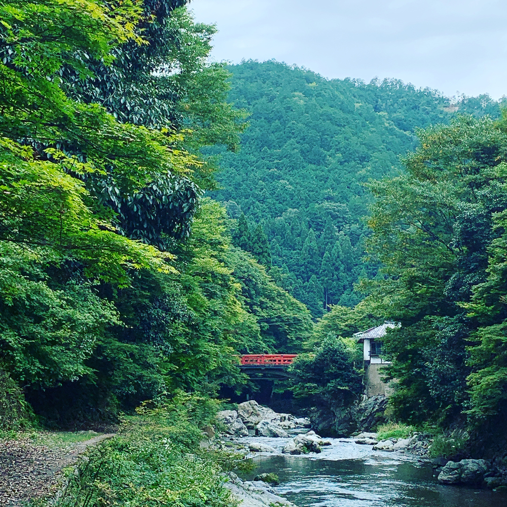 市バス62番で終点の清滝まで行き、清流清滝川に沿って走り出す。 美しい清滝ブルーに身も心も癒されつつ落合に到着すると、保津川と清滝川の合流地点で絶景を楽しめる
