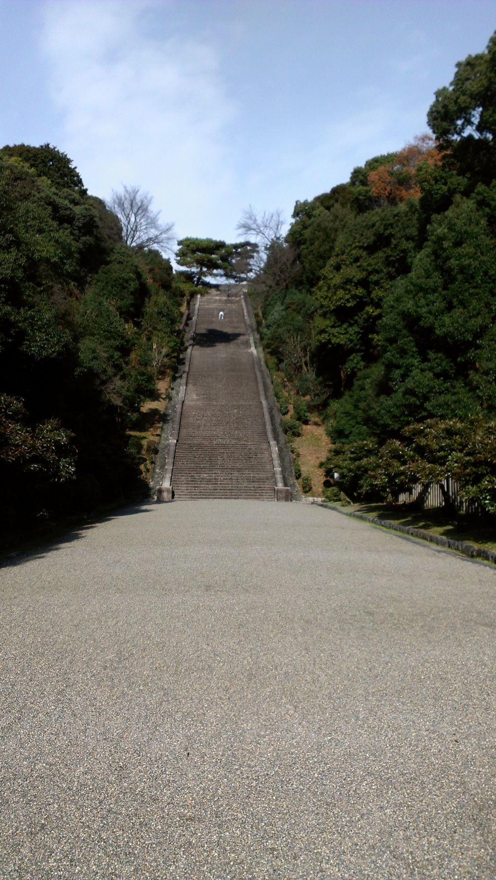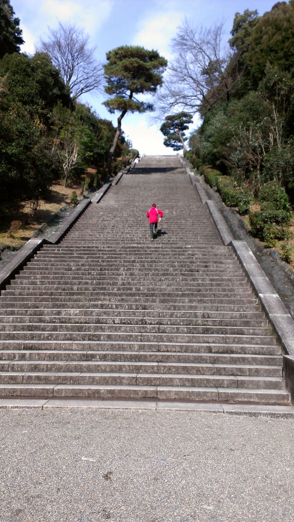 桃山御陵は明治天皇の陵として有名ですが、ランナーたちには大階段とその一番上から見える景色(いい景色!!)が有名です。