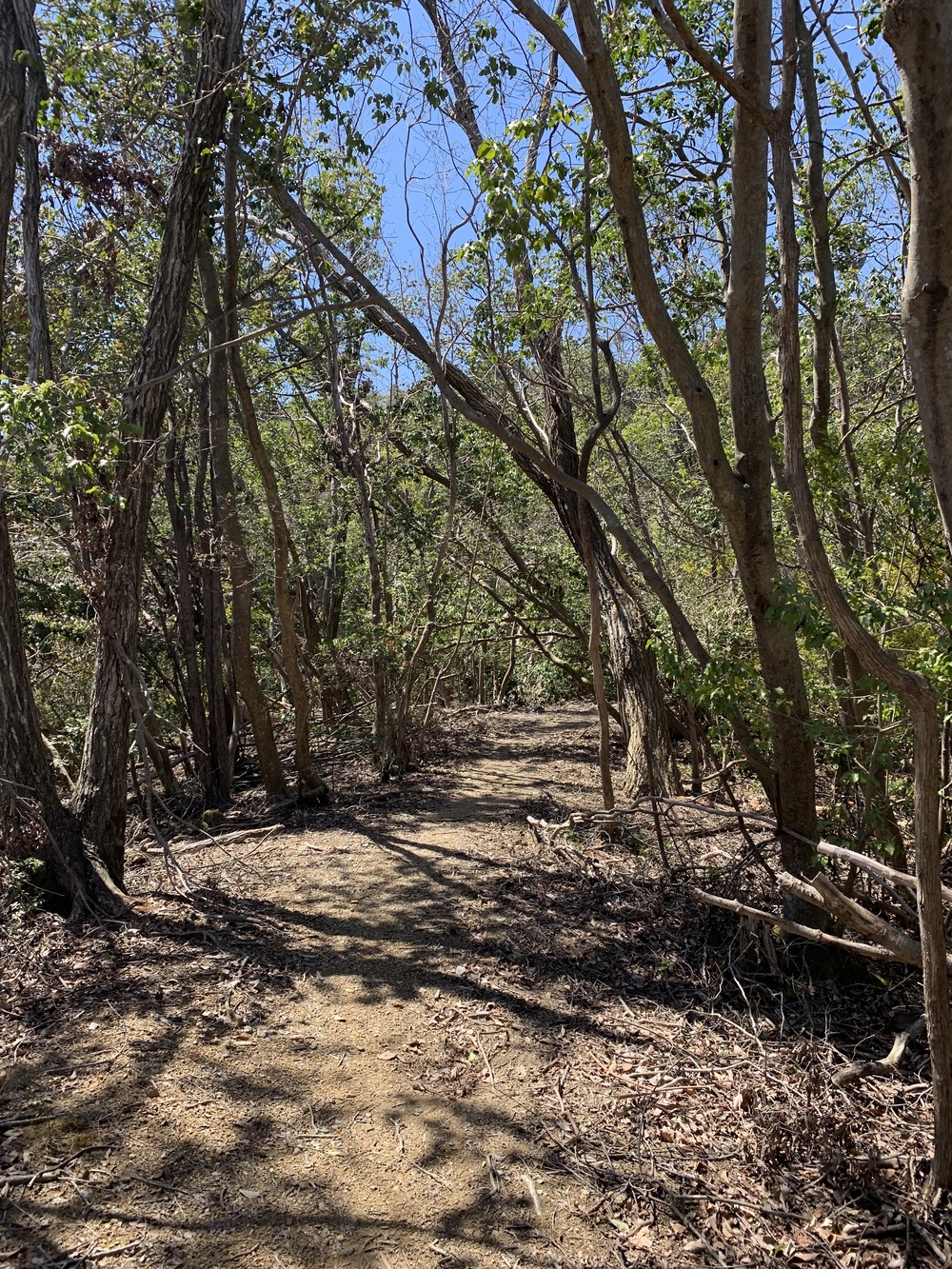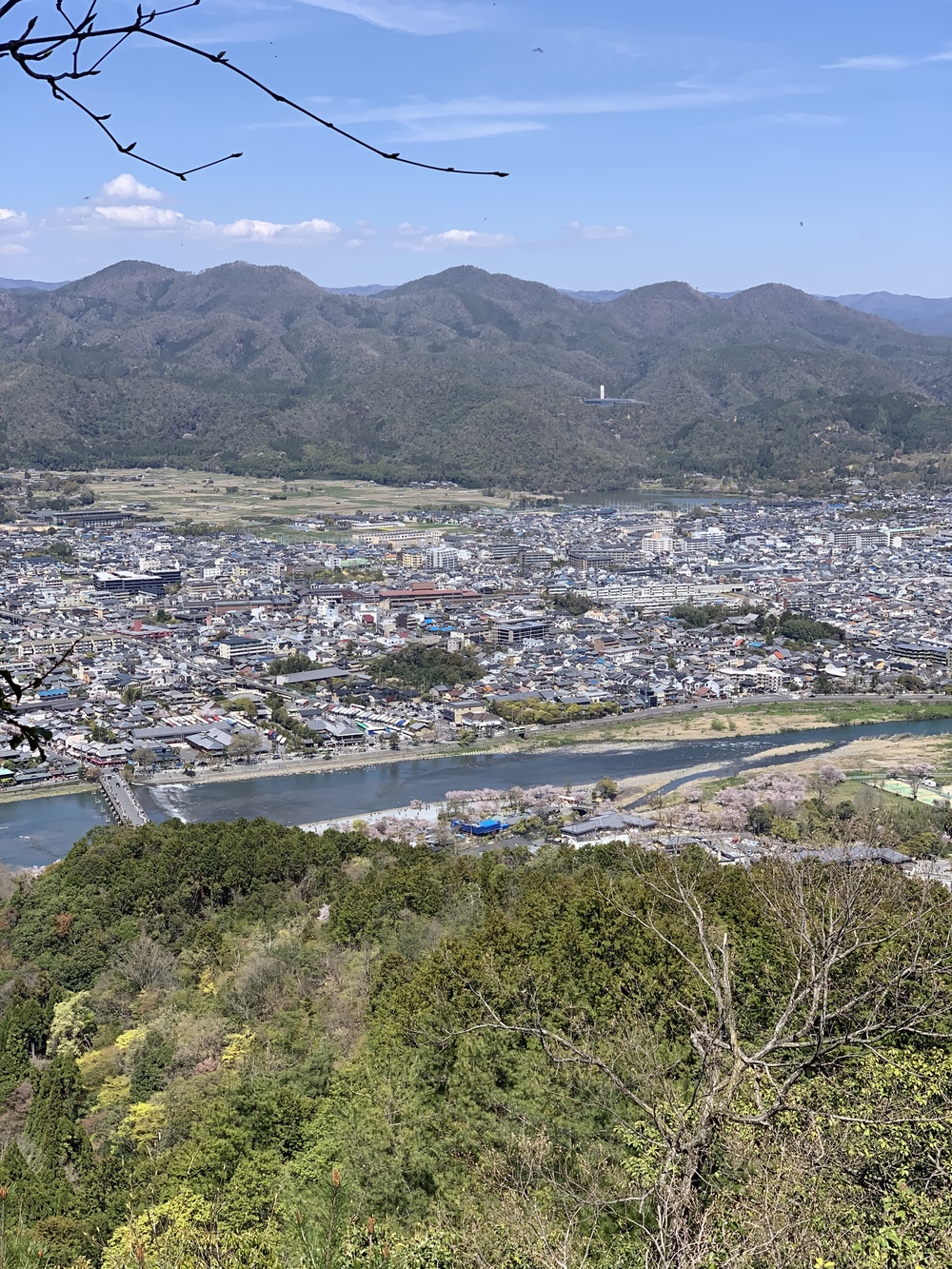 苔寺を通り過ぎて川沿いをひたすら登っていきます。その間いくつか分岐がありますが、道が太いほうに進みます。行き止まりまで行くと、保津峡に降りるルートと西山方面に行くルートがあるので、西山方面ルートへ進みます。ここからは緩やかな下り基調のシングルトラック。気持ちよく走っていると渡月橋を眼下に望むことができます。