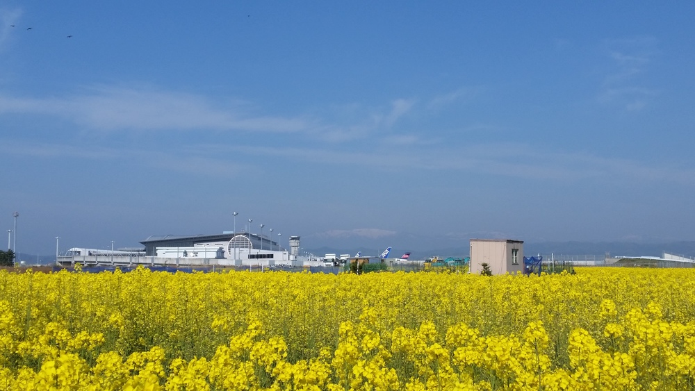 初夏は菜の花畑と残雪の蔵王がとても綺麗に見えます。