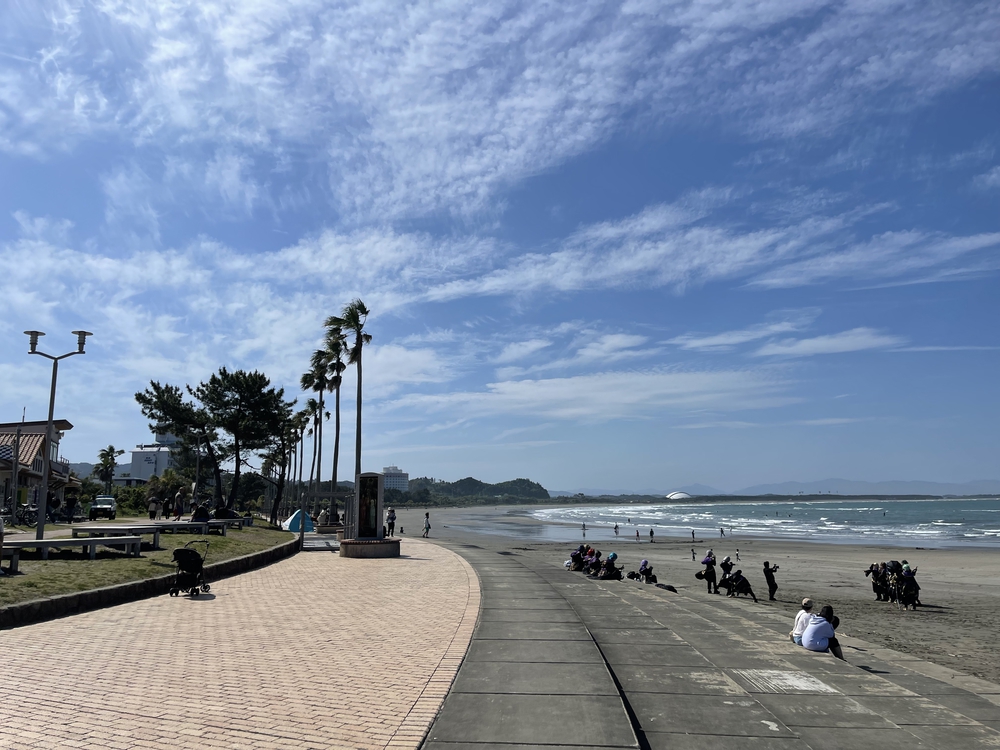 青島〜運動公園までは、フェニックス 並木がキレイな海岸線、その後とても整備が行き届いた公園を走ります。