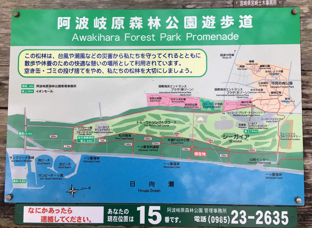 宮崎にきてシェラトン宿泊の際は、トム・ワトソンでゴルフも最高だが、一ツ葉有料道路を越えた日向灘から阿波岐原森林公園遊歩道の周回コースをトレイルランしたい。