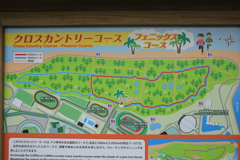 宮崎県総合運動公園横のクロカンコースは、地元の学生や市民ランナーのみならず、実業団や全国の強豪校が2月・3月によく合宿をおこなっており、ここでは一流ランナーの姿がみられることも。そして、観光地の青島では奇岩「鬼の洗濯板」が島を囲み、独特の雰囲気を感じることができます。