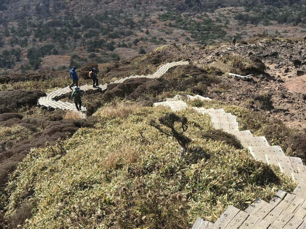 韓国岳は登りが続くため、継続的に走るには体力が必要です。