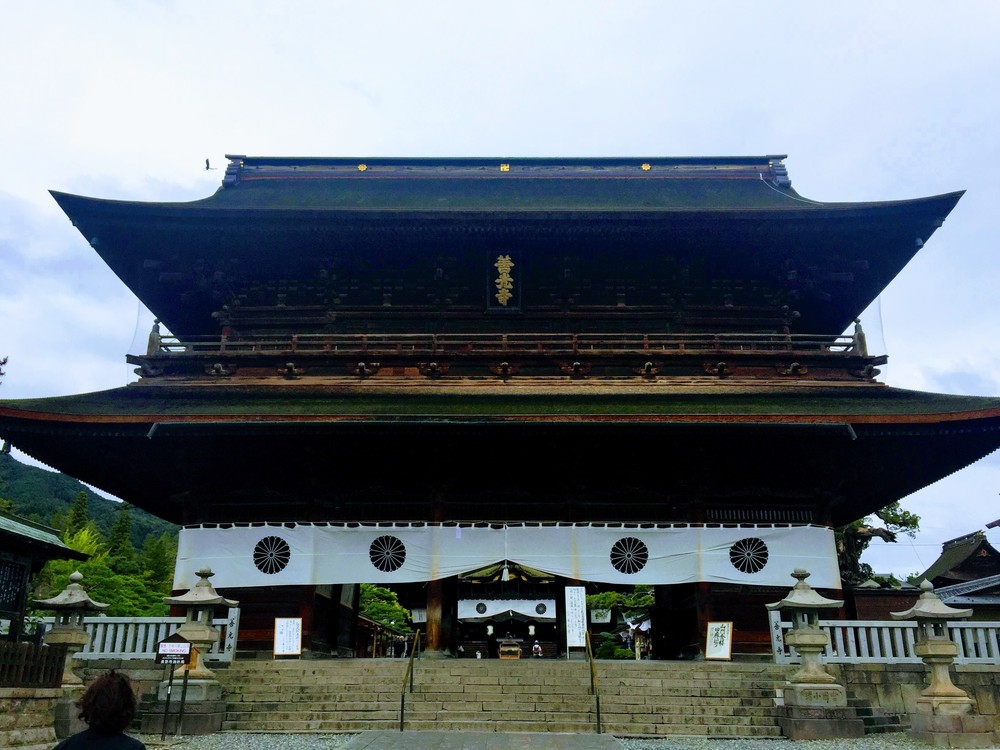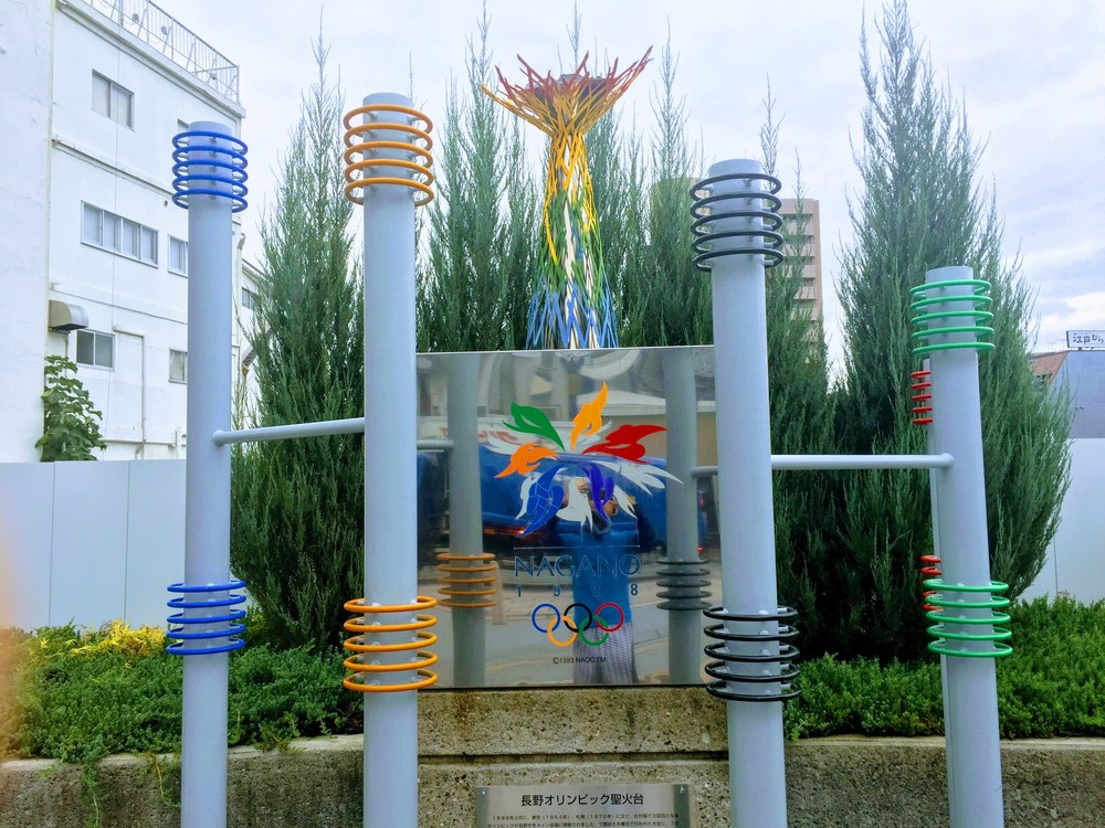 ちょうど表参道にあたり、緩やかな坂道を登っていきます(途中長野オリンピックの記念モニュメントもあります)
