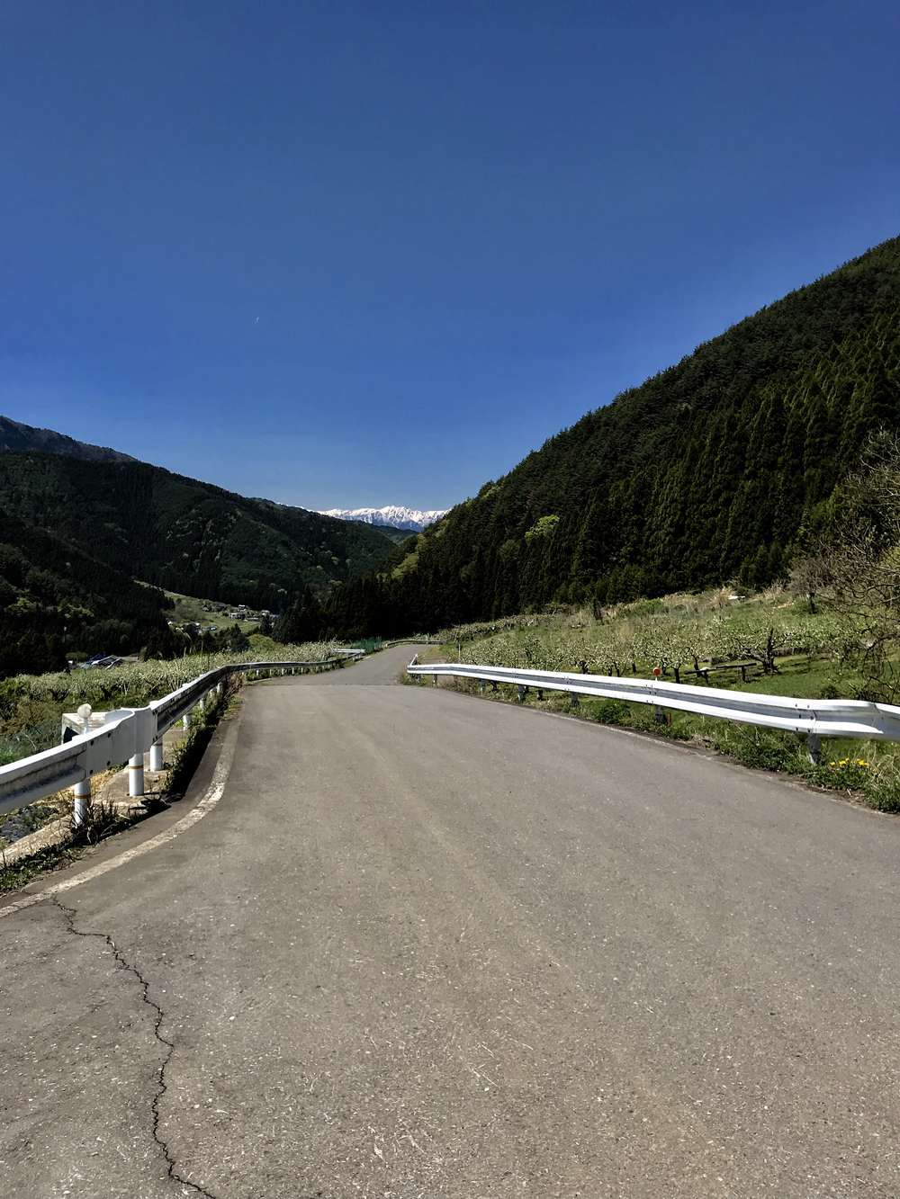 復路は保科の里山風景のビューポイントや、天気が良ければ遠く後立(北アルプス)が絶景です。