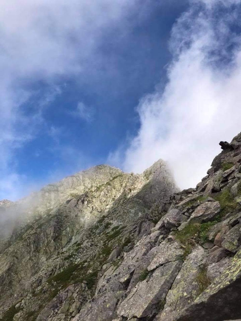 訪問日は、ガスが出て来たせいで視界が無くなる。せっかくの景色が見れないのは残念だが、難ルートを通る際に下が見えなくて済み、怖さが半減した。危険な箇所にはクサリがあり、ルート間違いが無いように至るところにペンキがあるので集中して通れば問題無い。
