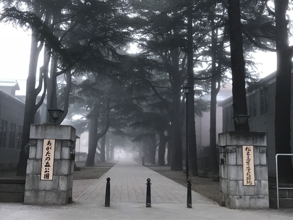 パワースポットの四柱神社を起点に 松本城一周、旧開智学校、縄手通り、蔵の街中町通りを走り、旧制松本高校のレトロなパステルグリーンの木造校舎の残っているあがたの森公園、そして道路からでも草間彌生のモニュメントが見える松本市美術館前を走ります。