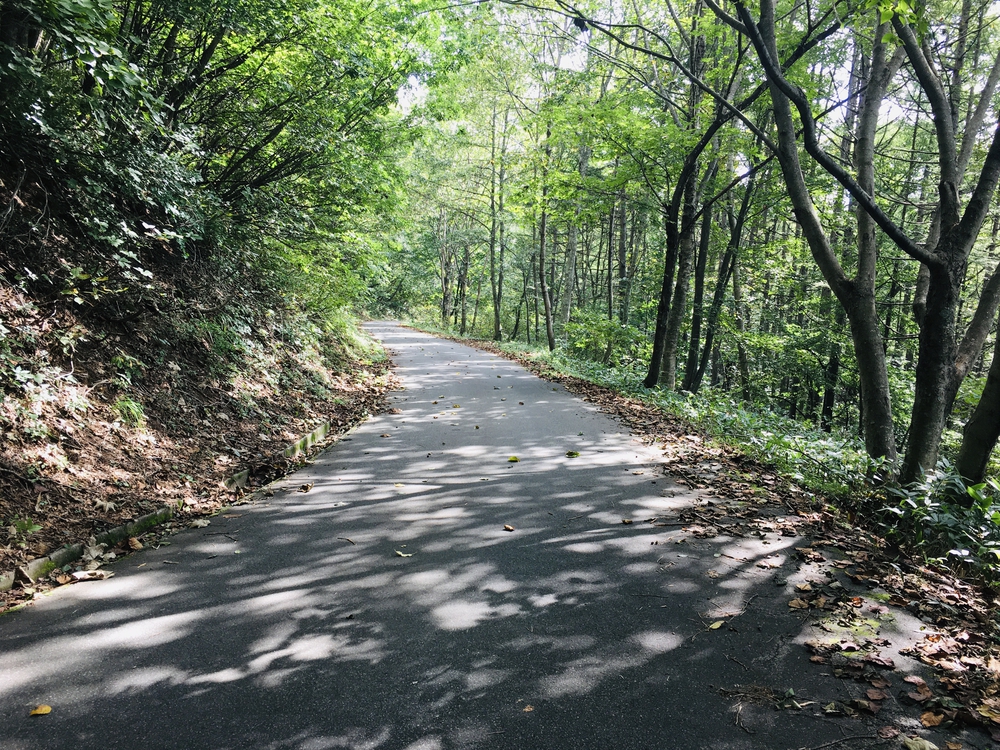 鹿島槍黒沢高原駐車場から小熊黒沢林道(舗装されている)を進み小熊山ハイキングコースを木崎湖の展望台を経て小熊山まで往復。車も殆ど通らないロードと静かなトレイルで人もあまりいないので土はふかふかで、裸足にも優しい道です。