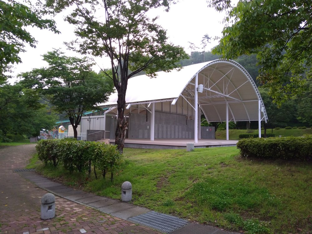 それはさておき、温泉街から住宅地をはしり、目的の公園に。