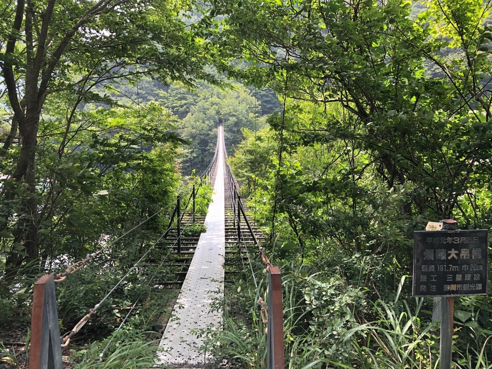 茶臼岳登山口にある吊り橋は、高所恐怖症の人には大変辛いです。覚悟が必要です。
