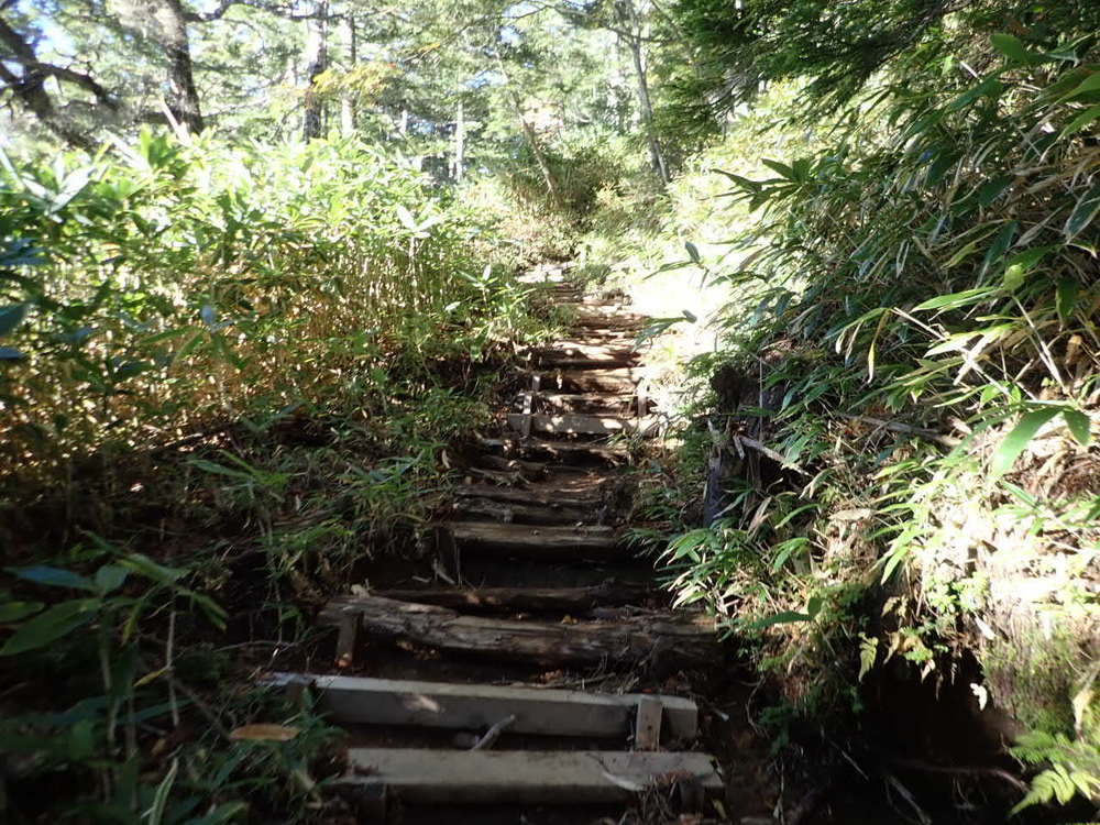 はじめこそよく整備された丸太階段(自分は苦手ですが)ですが山頂に近くなるにつれ、ゴーロ道になります。