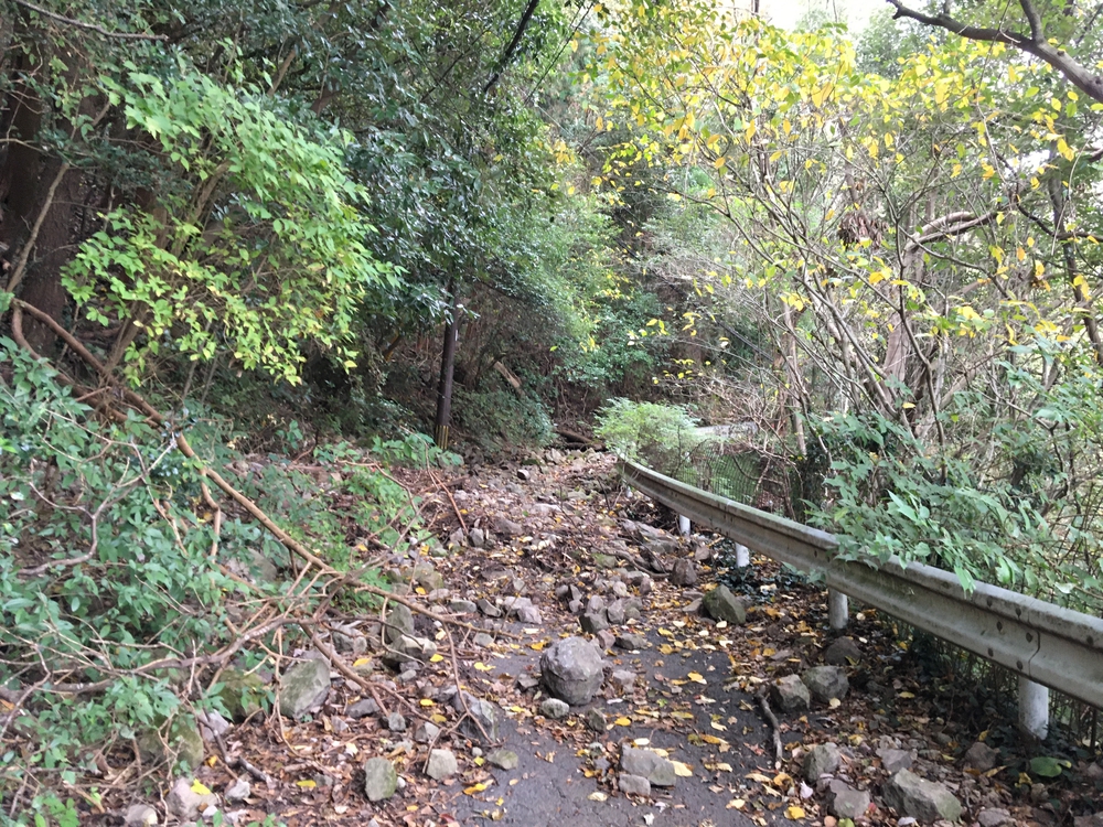 往路は途中から落石の多い不整備の元車道、からの階段山道をはしりました。トレランチックに走るならありですが、こちらはちょっと荒れていて怖いですね。復路は車道沿いを降りましたが、素直に車道沿いを走るのがスムーズと感じました。。