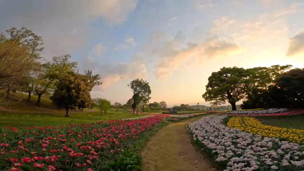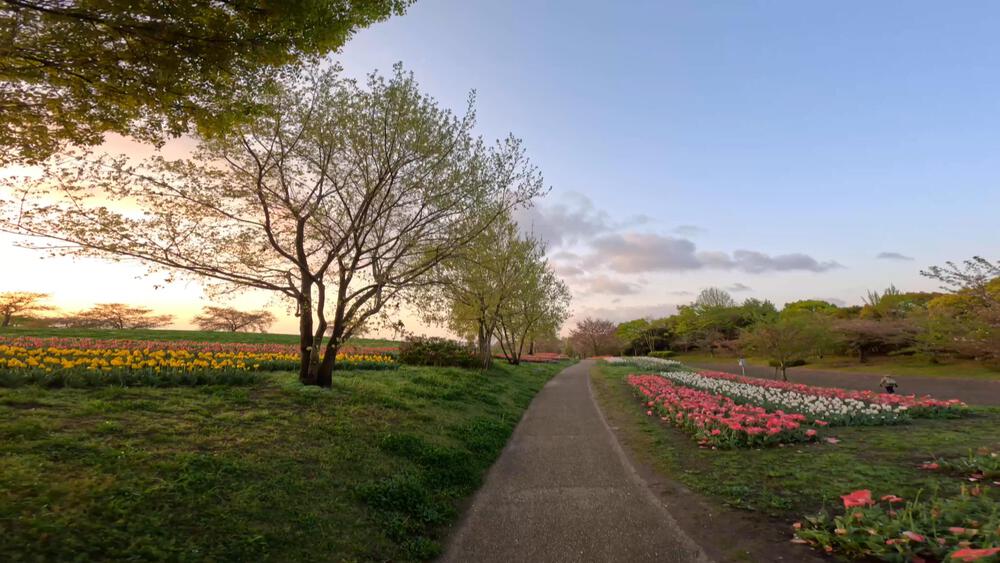 奈良県にある県営馬見丘陵公園を2023年4月8日のチューリップフェスティバルを開催している日に走ってきました。公園は隣接公園などをつかって周回すると5Km以上のコースになります。馬見公園の駐車場は無料ですが、早朝に走る場合は空いていないので隣接する河合町総合スポーツ公園 の第1駐車場(無料)に停めて、河合町総合スポーツ公園をスタート地点にするのがオススメです。