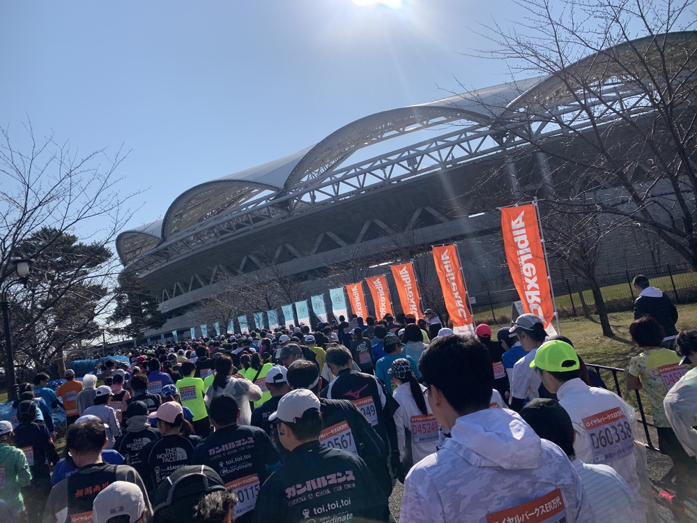 3/17開催の新潟ハーフマラソンに参加してきました!全面フラットでぐるっと一回り、好タイムが狙えるコースだと思います。15キロ地点あたりでのエイドが最高のご褒美、イチゴが食べられたのが何よりも嬉しかったです!景色としては面白みに欠けますが、沿道にはたくさんの人が応援してくれているので、雰囲気は満点です!