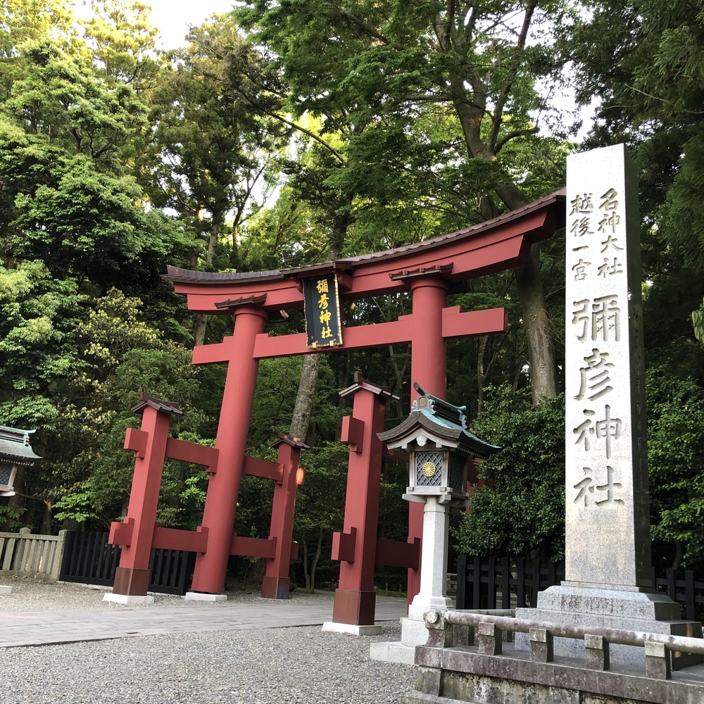 周りは木に囲まれ、古い民家などを横目に弥彦神社を目指します。