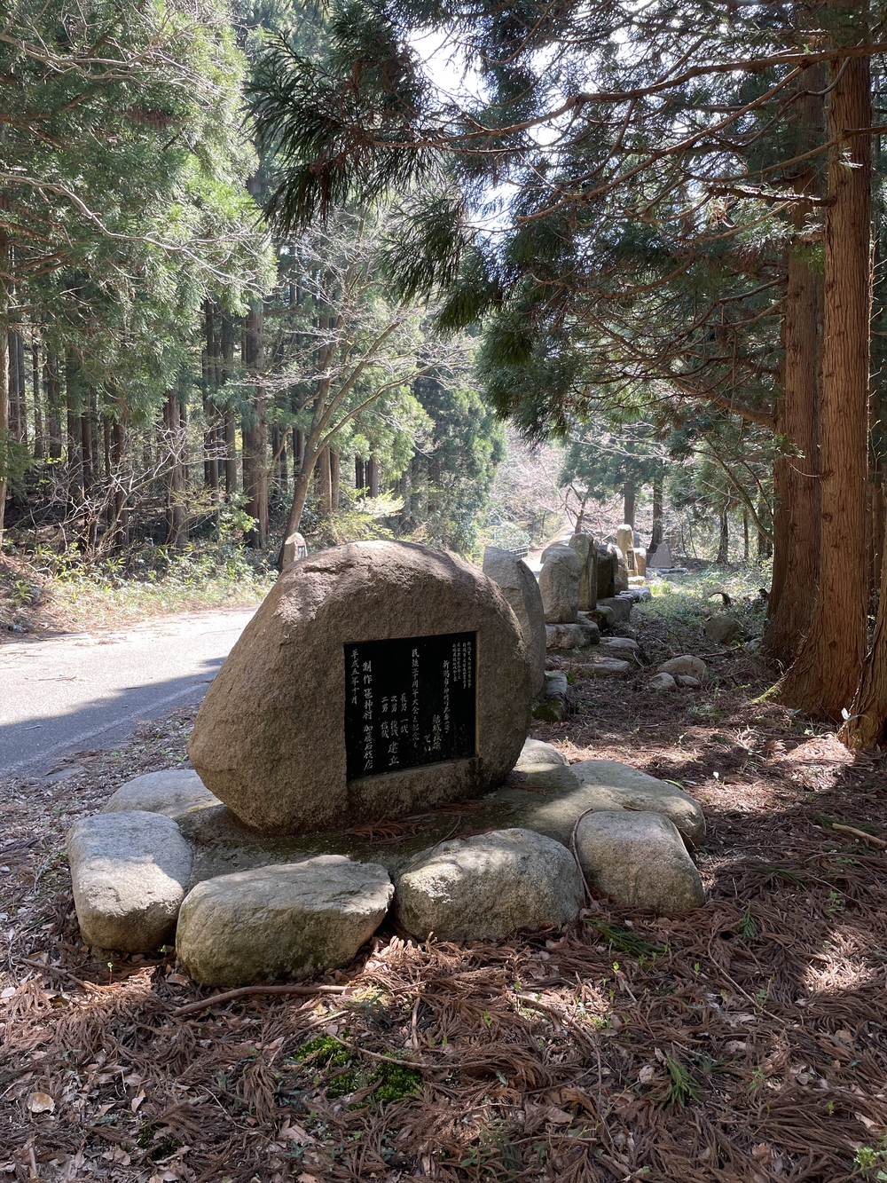 新潟県阿賀野市にある中部北陸自然歩道、別名「やまびこ通り」を往復してきました。距離は片道約5キロメートルです。往復すると10キロメートルにも満たなかったので、余計に走ってしまい正確な距離を確認し損ねました。距離はそれほど長くないので、250基以上ある句碑や歌碑を眺めながら走るのもいいかもしれません。コースは、五頭連峰の中腹を横断する林道であることから、アップダウンがあります。村杉温泉側からスタートすると、下りを走る場面が多く、出湯温泉側から走ると逆に上りを走る場面が多いです。体力があるうちにのぼりの多い出湯温泉側から走るといいかもしれません。コースの途中には、蒲原平野を一望できる展望台がありますので、天気の良い日にチャレンジしてみてください。 このコースの魅力は、適度なアップダウンを使ってトレイルの練習をしたいランナーの方におすすめのコースです。