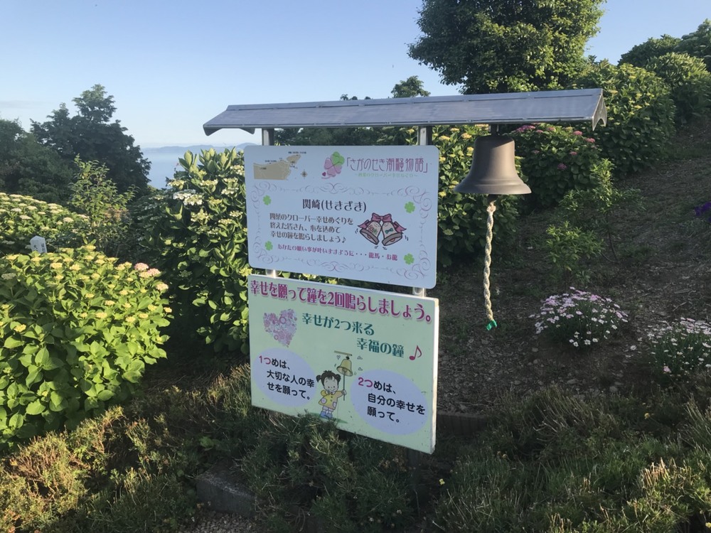 場所は、関崎海星館(せきざきかいせいかん)という展望・天文施設。300度のパノラマが楽しめるこの地に、幸福の鐘がある。幸福の鐘を2回鳴らし(1つめは、大切なあの人の幸せをせがって、2つめは、自分の幸せをねがって。)、トレイルランのコースを走って関崎の灯台へ。
