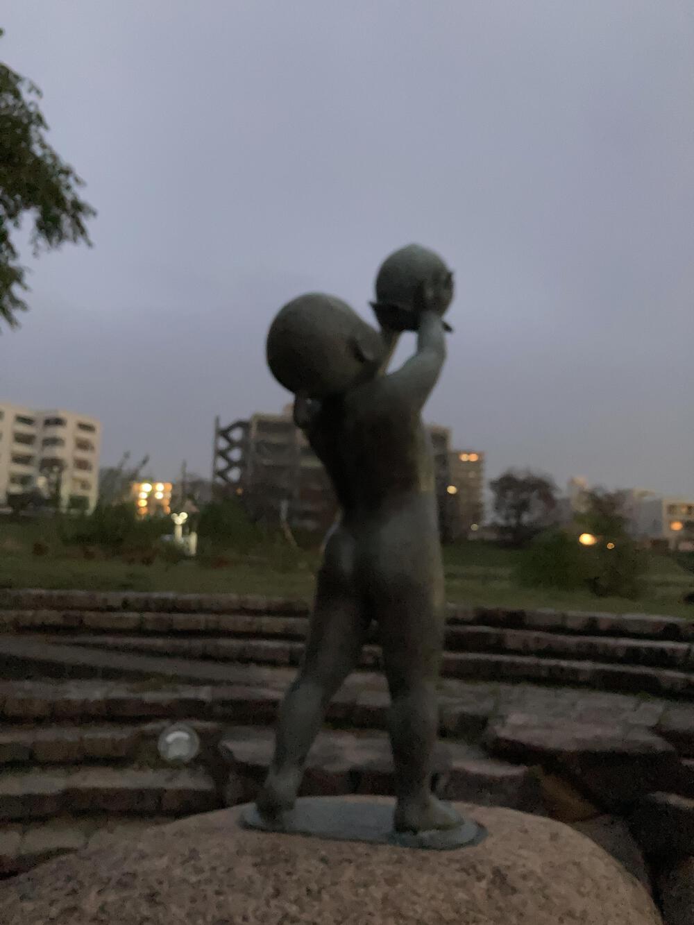 後楽園の河原側遊歩道を通って「水辺のももくん」へ