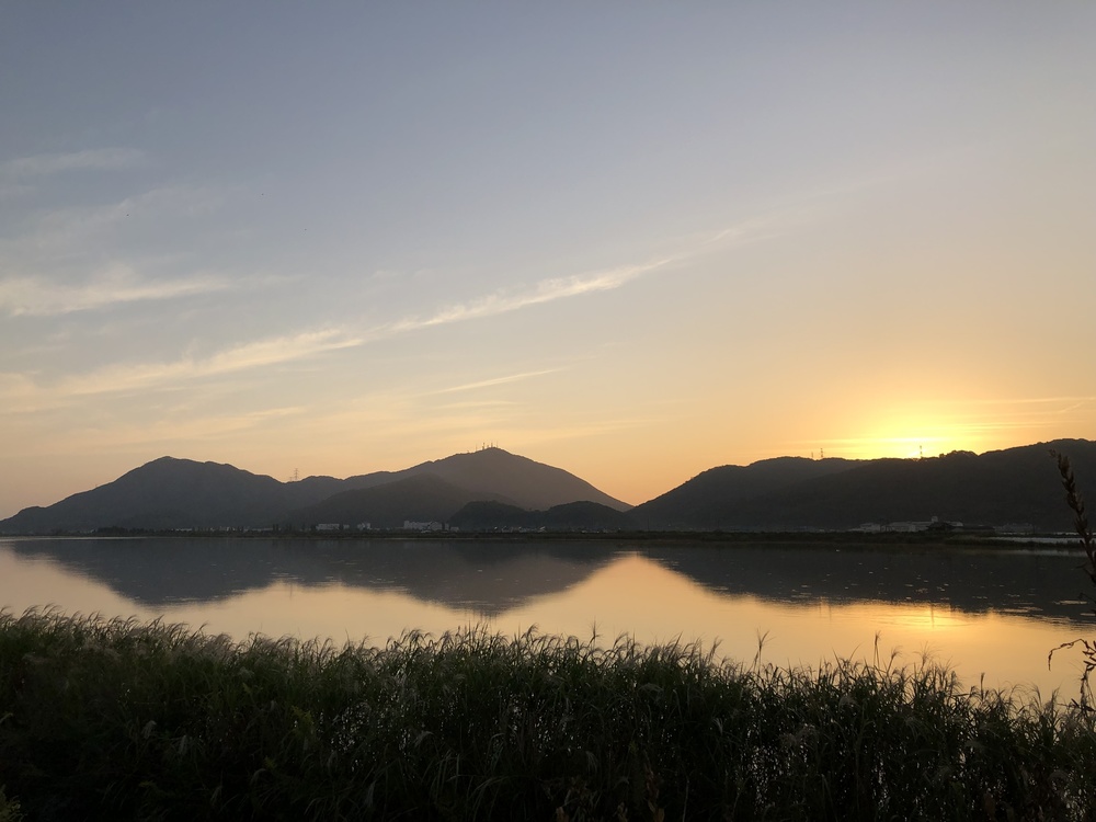 今日は天気が良く、金甲山の隣の怒塚山(いかつかやま)から日が昇りました。綺麗なダイヤモンド怒塚が拝められました。