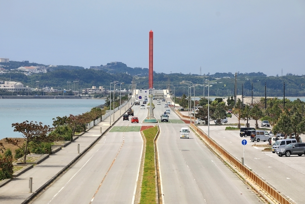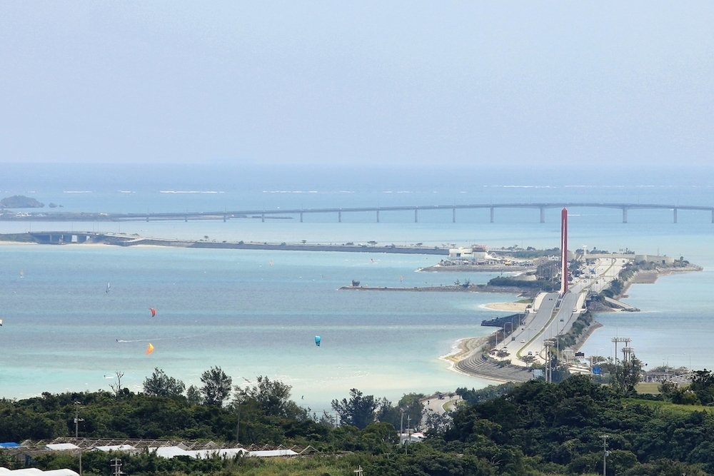 沖縄県中部のうるま市では毎年4月に「あやはし海中ロードレース」が行われていますが、そのコースであるうるま海中道路をスタートして西に向かいます。眺めの良いシーサイドコースは晴れの日には絶景が待っていることでしょう。