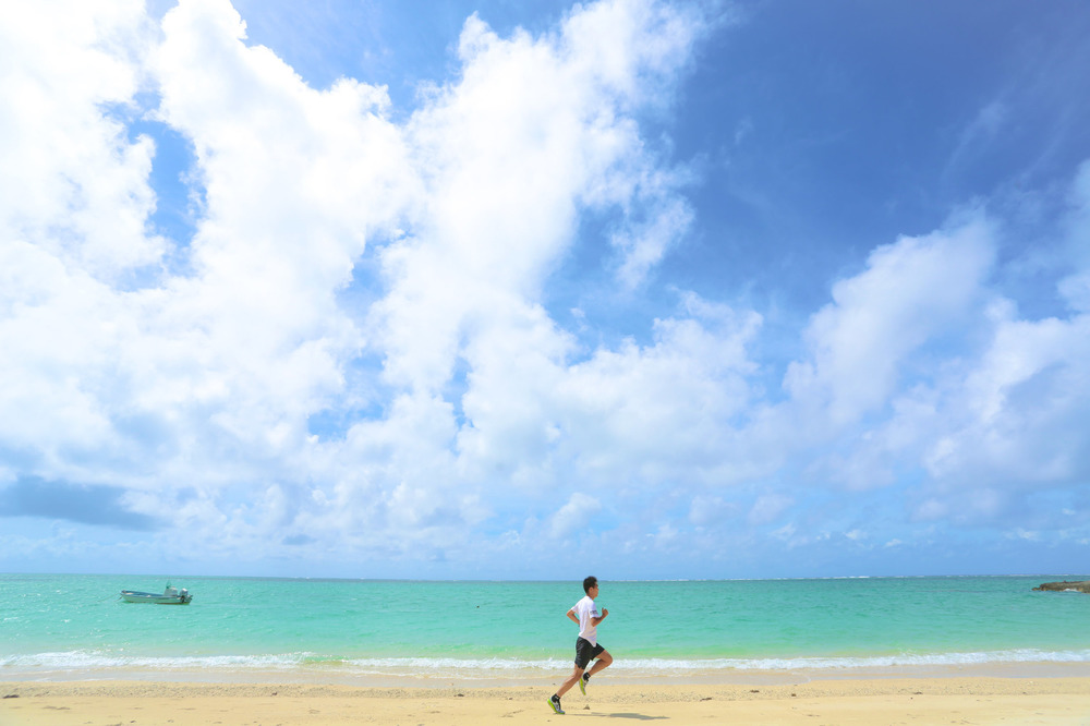 奥武島から数km東に向かうと、南城市を代表するビーチである新原(みーばる)ビーチが見えてきます。ここでも見渡す限りの美しい景色に心を奪われるでしょう。速く走る必要はありません。ゆっくり歩いたり、さざなみの音を聞きながら心を安らかに、最高の時間を過ごしてください。