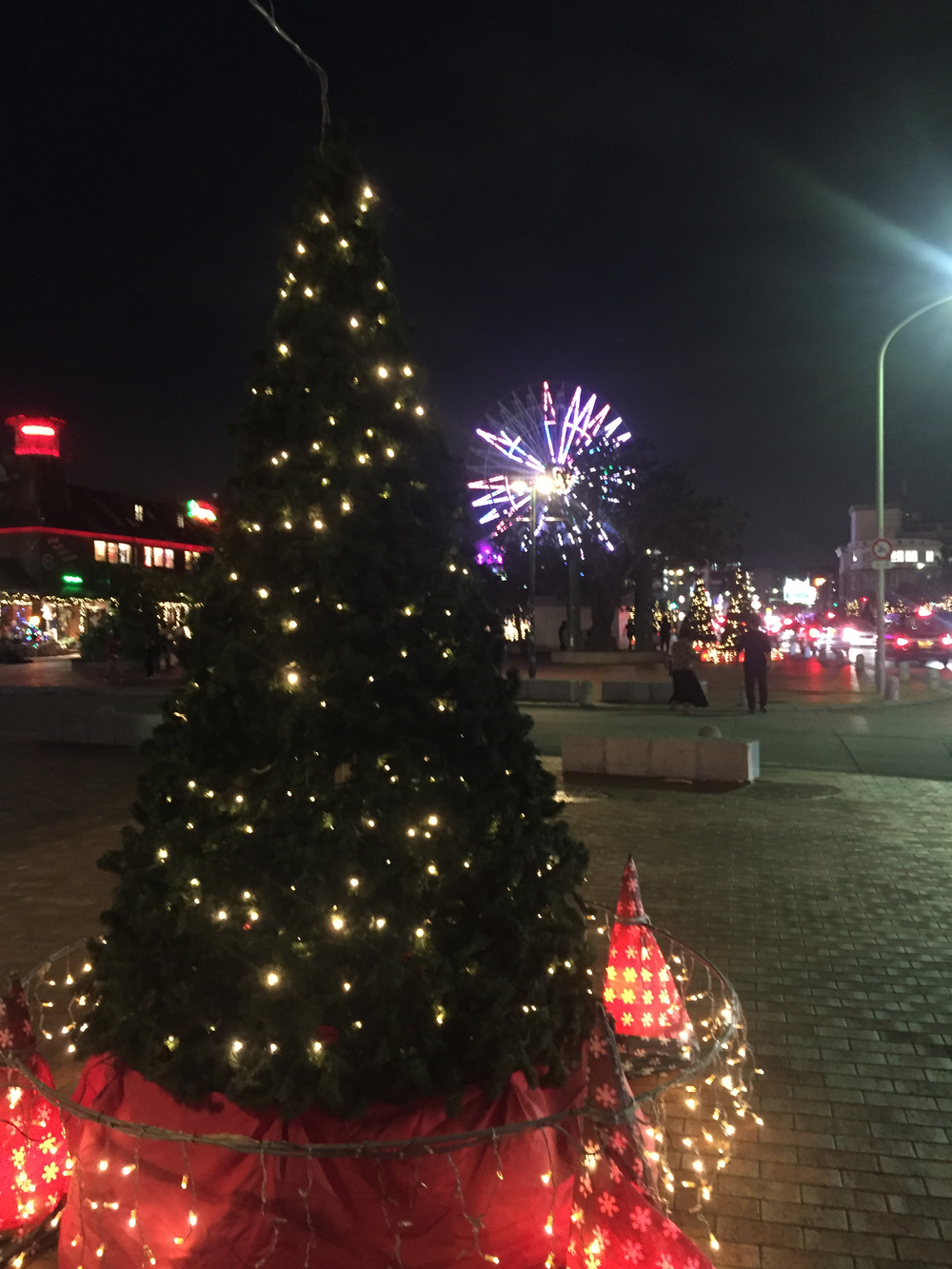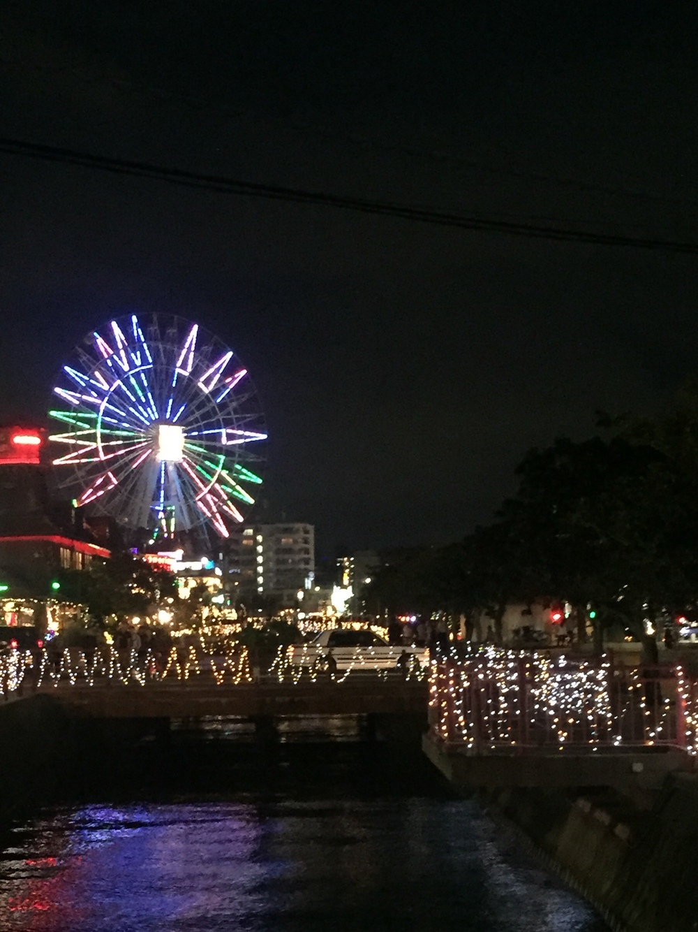 現在、アメリカンビレッジ内はイルミネーションが施されており眠らない街になっています…