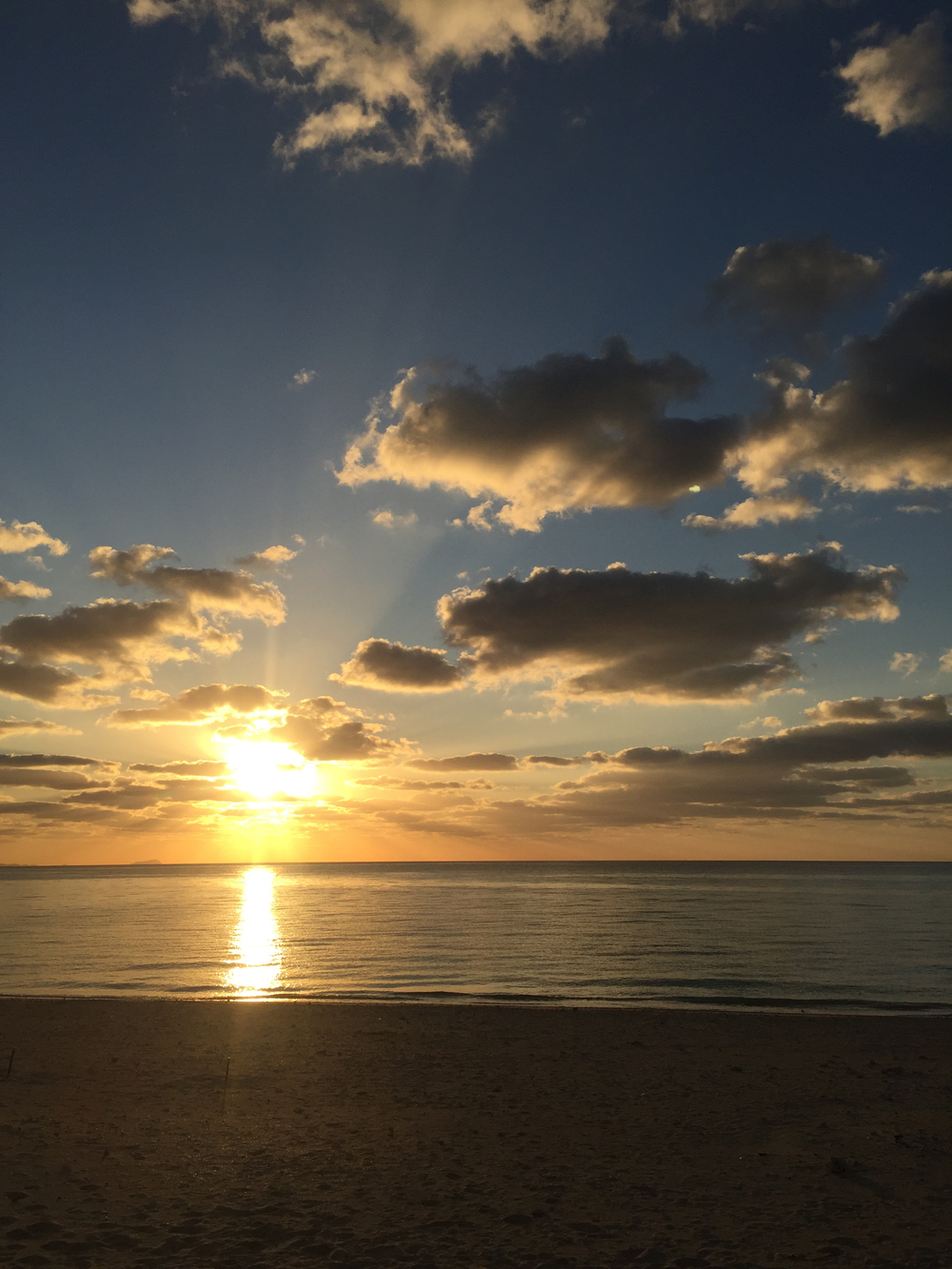 ビーチに着くと朝日がとても綺麗でした…帰りは激坂に挑戦!やはりキツかった💦