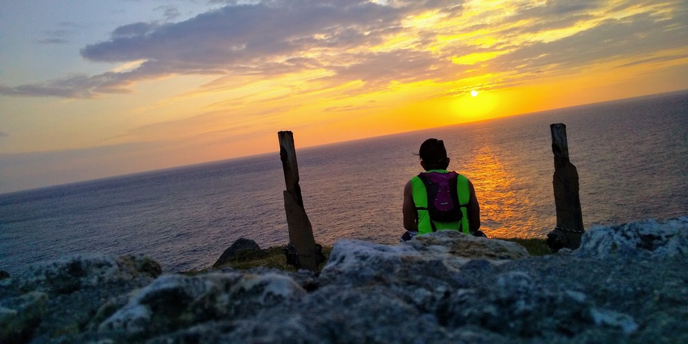 東崎灯台で日本一遅い日の出を見てから、島中央南部にあるドラマ「Dr.コトー診療所」のロケ地(志木那島診療所)を見学して、宿まで戻る約20kmの島半周ランです