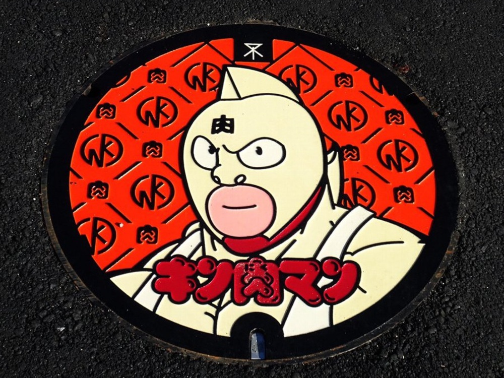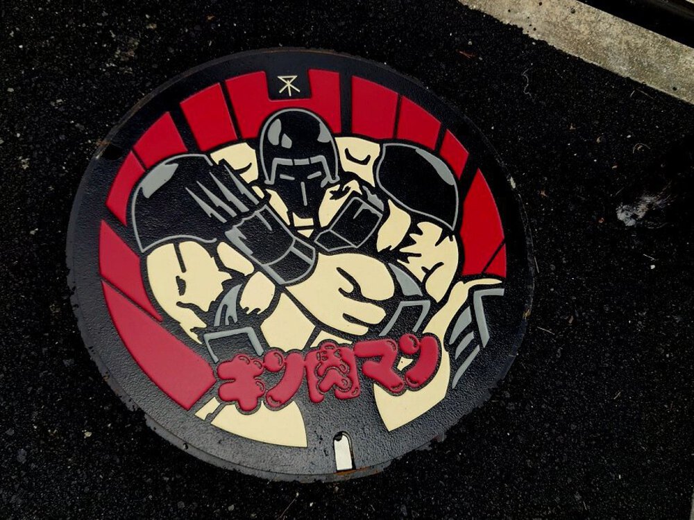 下水道事業について関心を持っていただく目的で大阪市内5カ所に点在するキン肉マンキャラクターのマンホール(作者の漫画家ユニット「ゆでたまご」のおふたりが大阪市出身なので)。