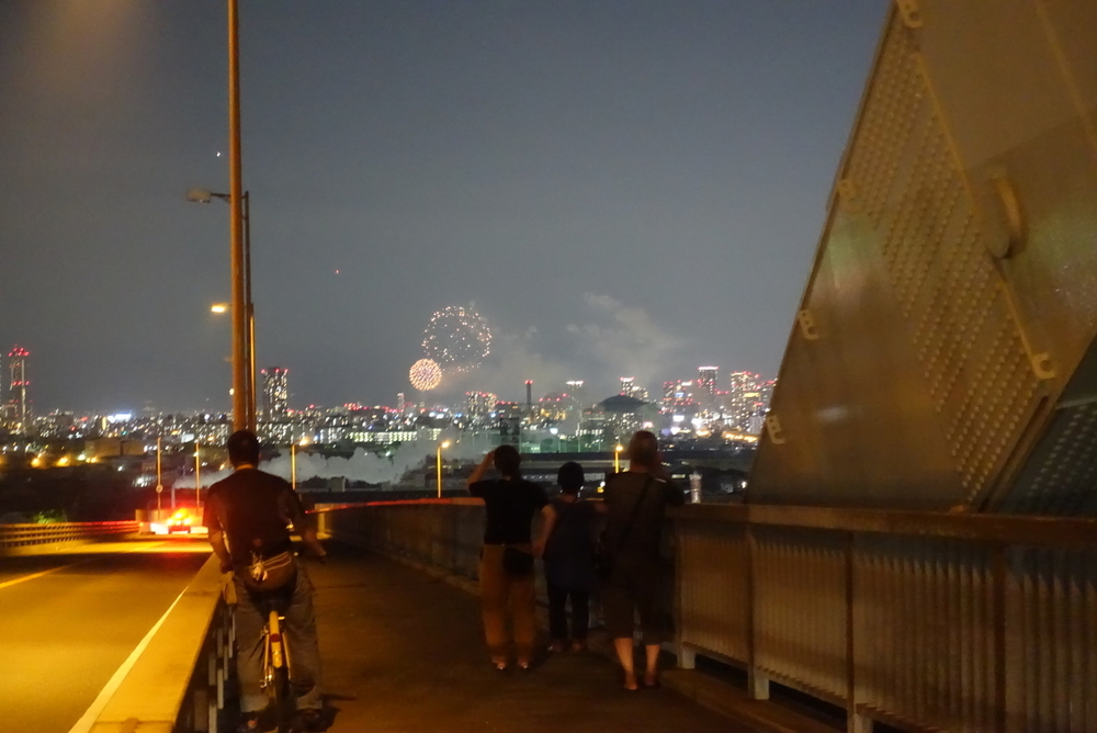 新木津大橋は片側ループ坂、なみはや大橋はかなりの急坂ですが都会の絶景が広がります
