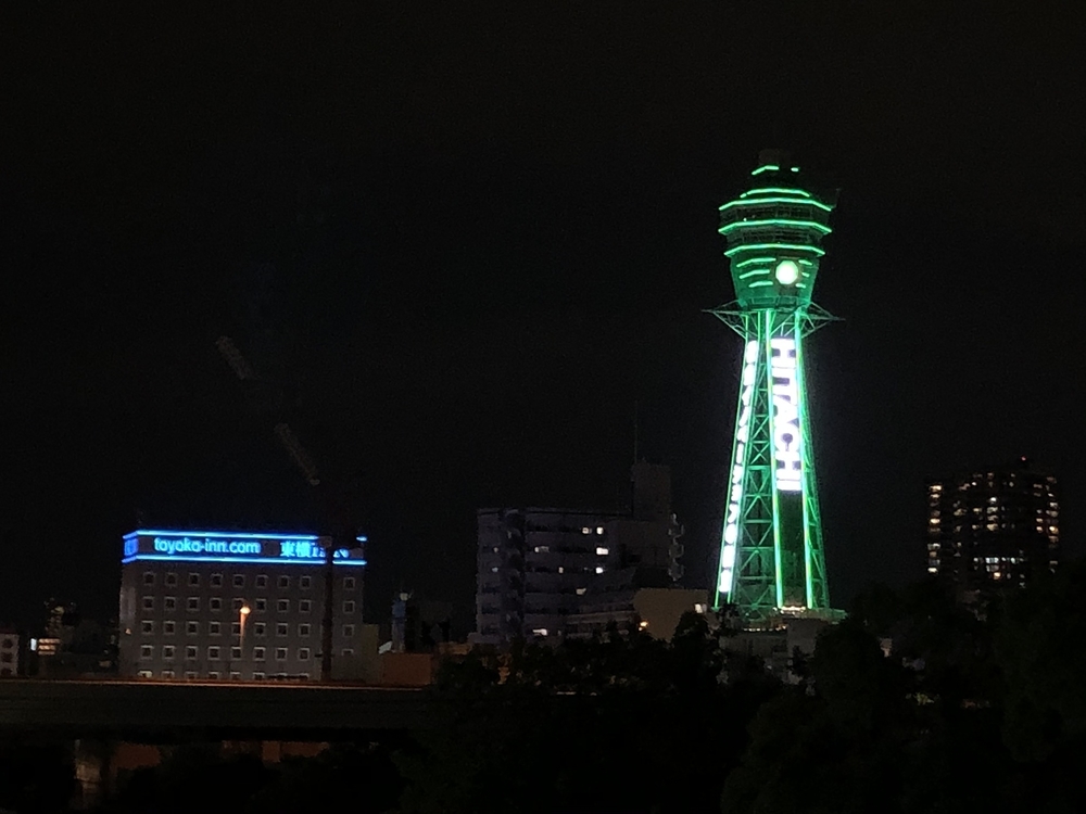 コロナ禍においては、緑に点灯している通天閣を見に行くのも一つですね。