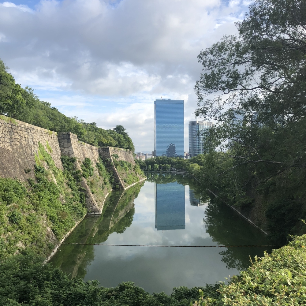 宿泊先ホテルより大阪城を目指しましたが、朝でもランナーはそれなりに見かけ、ビルの間を抜ける風は気持ちいいです。