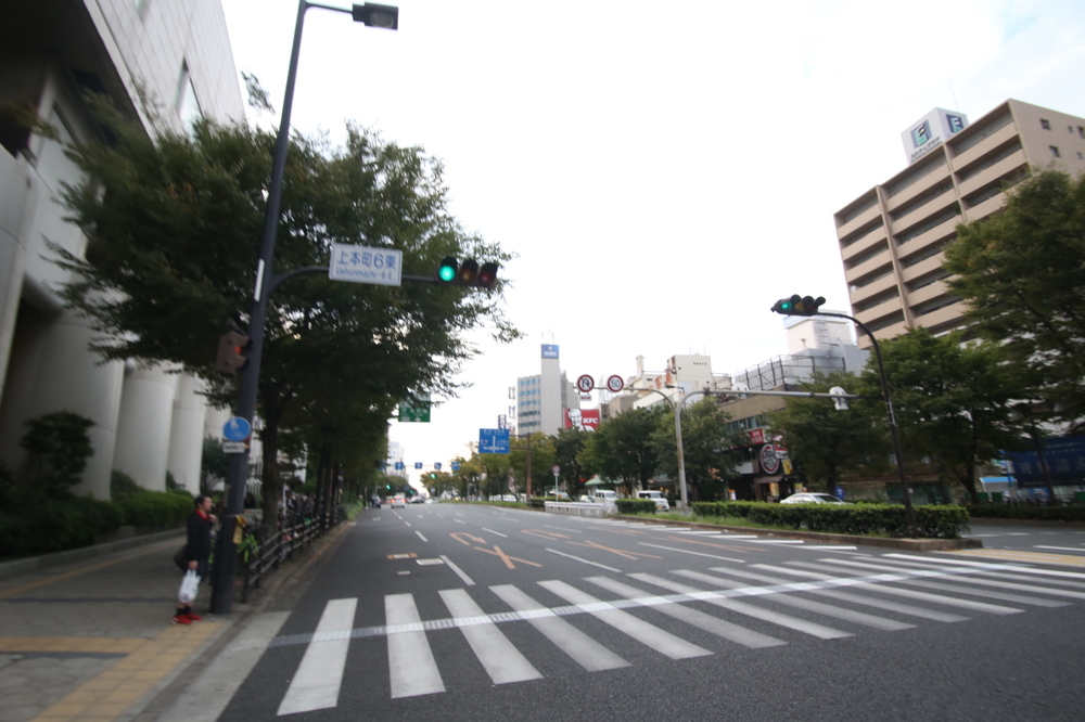 大阪府庁と大阪城公園の間の公道をスタートして、このコース上で3回通過する難波交差点(写真3枚目)を最初に通過するのは6km手前。大阪マラソンの時期に咲き誇る、美しいイチョウ並木はその地点、御堂筋から見ることができます。この御堂筋のイチョウ並木は、秋の大阪の風情あふれる絶景ポイントです。