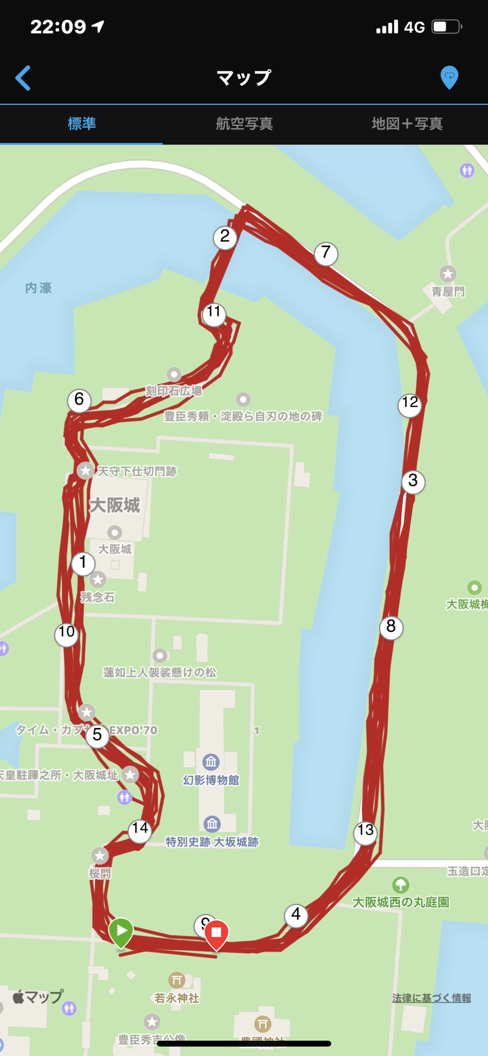 観光客が多いので、気をつけて走らないといけませんが、大阪城のイルミネーションがキレイです🎶
