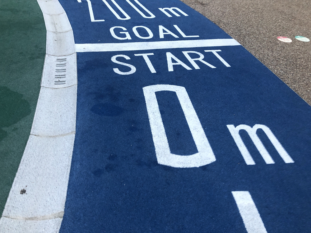 途中にある公園は地面にメートル表記があるので、立ち寄って、距離を調節することができます。