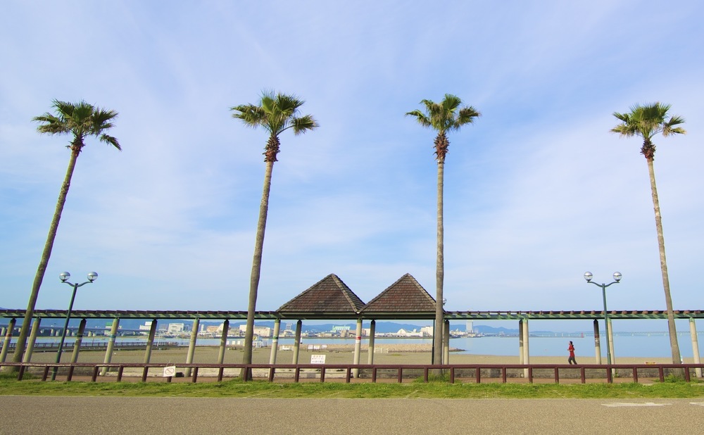 海水浴場のほうは砂浜ですが、少し離れたところはコンクリートの大きな道がありますので、ジョギングしている人をよく見ます。