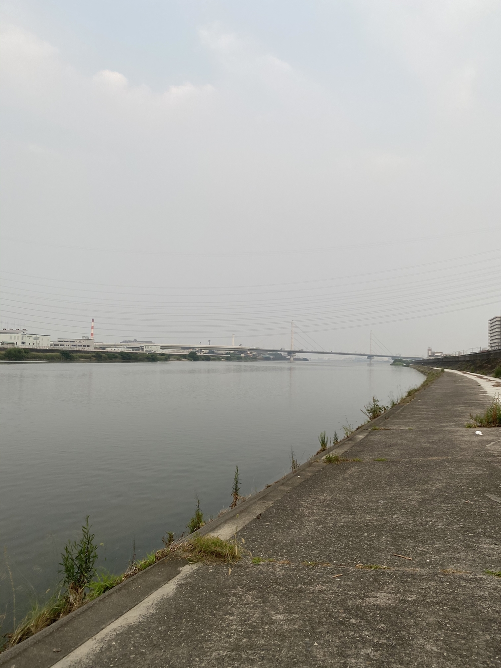 真夏の日中は遮るものがなく太陽が降り注ぐので暑い上に、川の臭い匂いが…