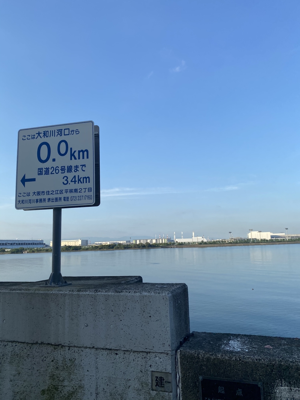 かもめ大橋から大和川の始まり0km地点まではトラックターミナルの並ぶ道です。