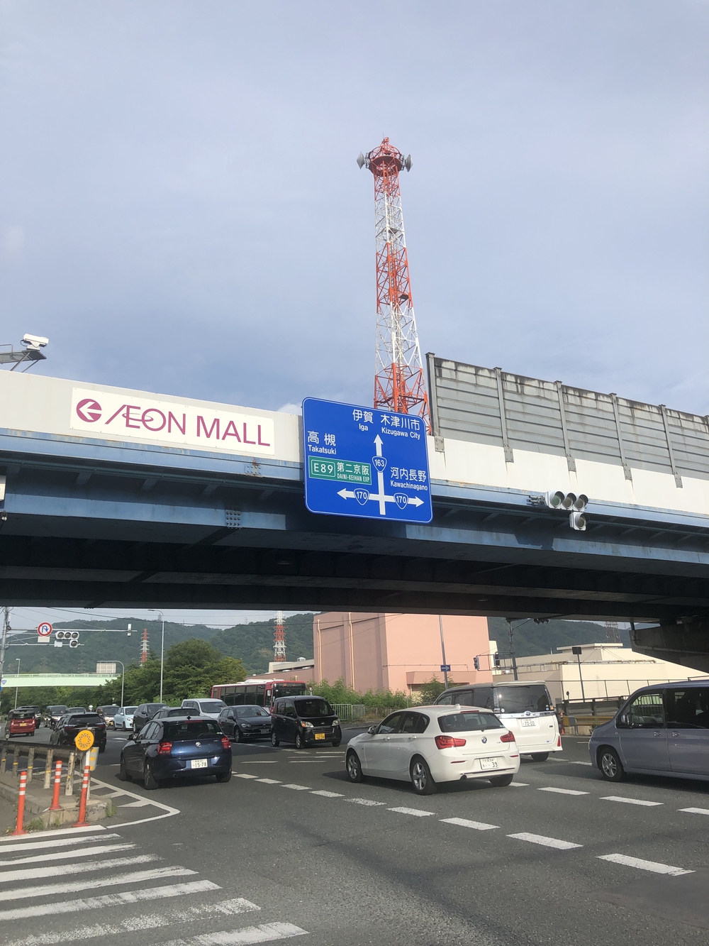 外環状線とバイパス国道1号線の交差点を歩道橋を利用して渡り、南下して戻る10kのコースです。
