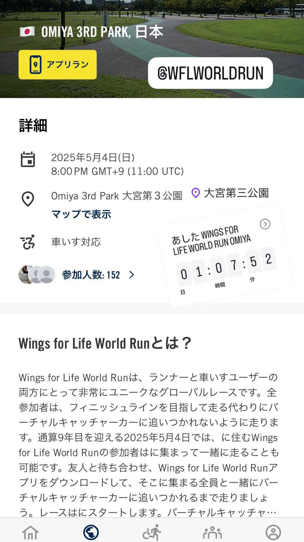 Wings for Life World run in 大宮第三公園
