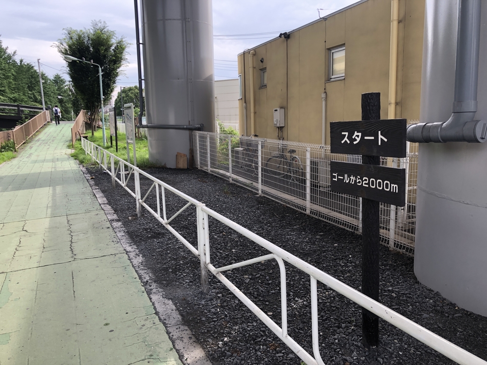 中浦和駅の遊歩道にスタート地点があるのでそこからスタートし遊歩道のゴール地点の看板があるのでそこで往復するコースです。