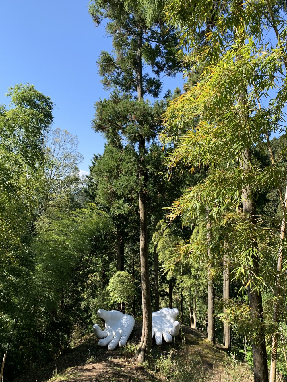 関東ふれあいの道で子の権現裏参道を行く1way。短く急登して、長い下り坂を駆け降りることができる素晴らしいトレイルコース。伊豆ヶ岳ピークは木立の中で開けてませんが、道中たびたび現れる展望最高でした。子の権現手前で森の中の巨大な白い手に遭遇。思わず拝んでしまいますがアート作品だそう。権現様で足腰お守りをいただき脚の無事を祈願。終盤に立ち寄りの東郷神社〜秩父御嶽神社は思いの外ハードな石段登りで脂汗と苦笑い。東郷元帥に平和祈願して吾野駅へと辿り着きました。