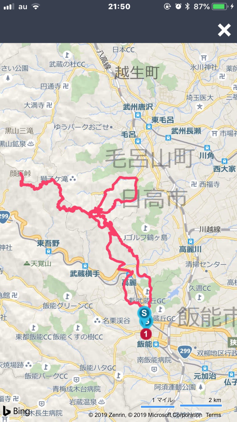 スタートは飯能中央公園→巾着田→日和田山→毛呂山公園→鎌北湖→北向地蔵→峠走で顔振峠→折り返して北向地蔵→トレイルで高指山手前の茶屋→峠走で高麗駅方面